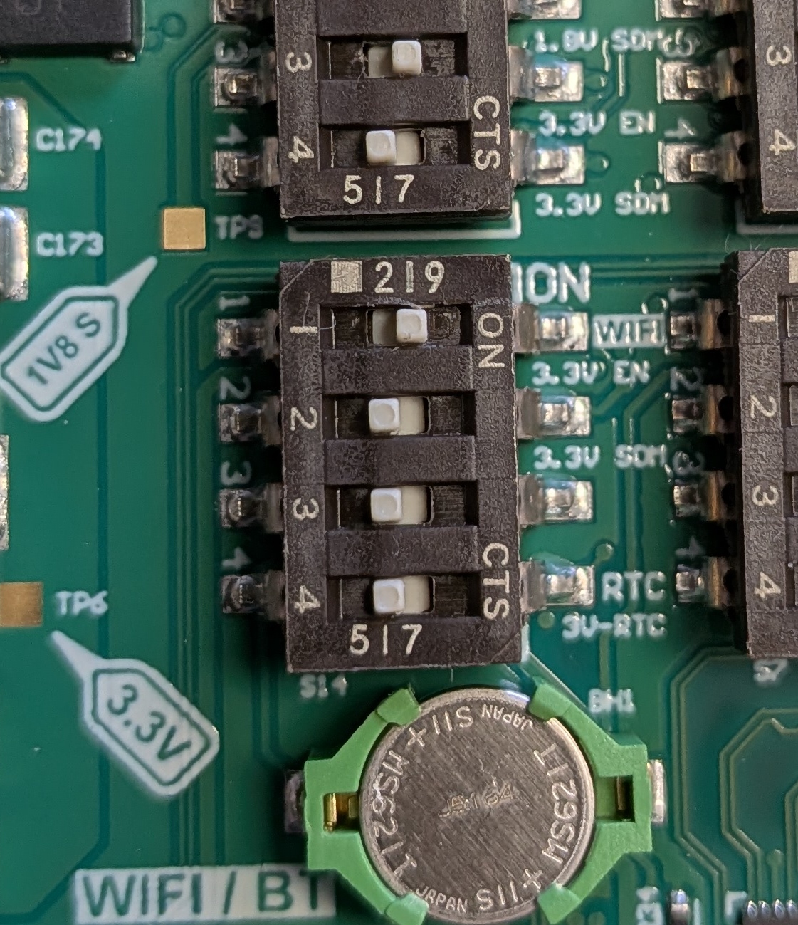 Ensure that Switch S14 is set properly.- Switch 1 should be set to enable the 3V3 WIFI from the DC supply